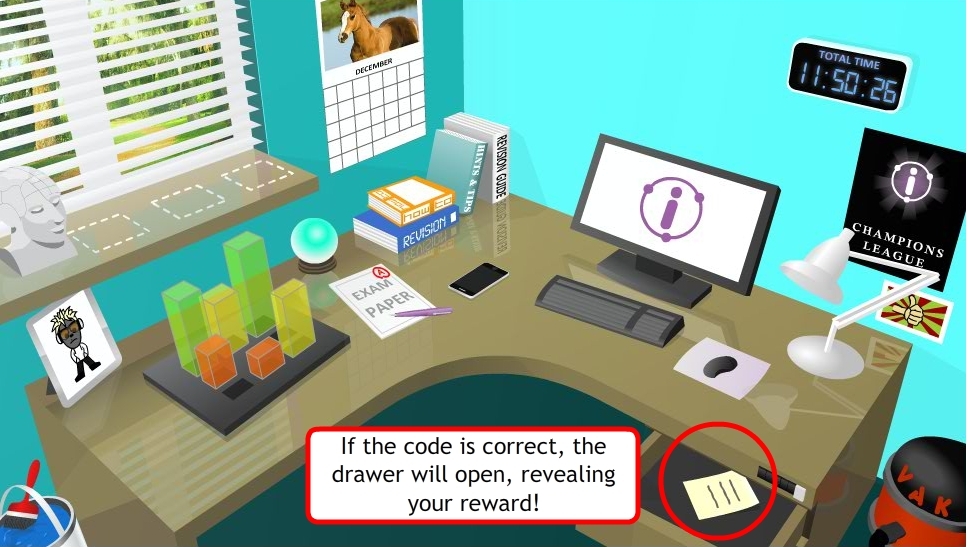 If the code is correct, the drawer will open. By clicking on the note, it will tell you what your reward is.