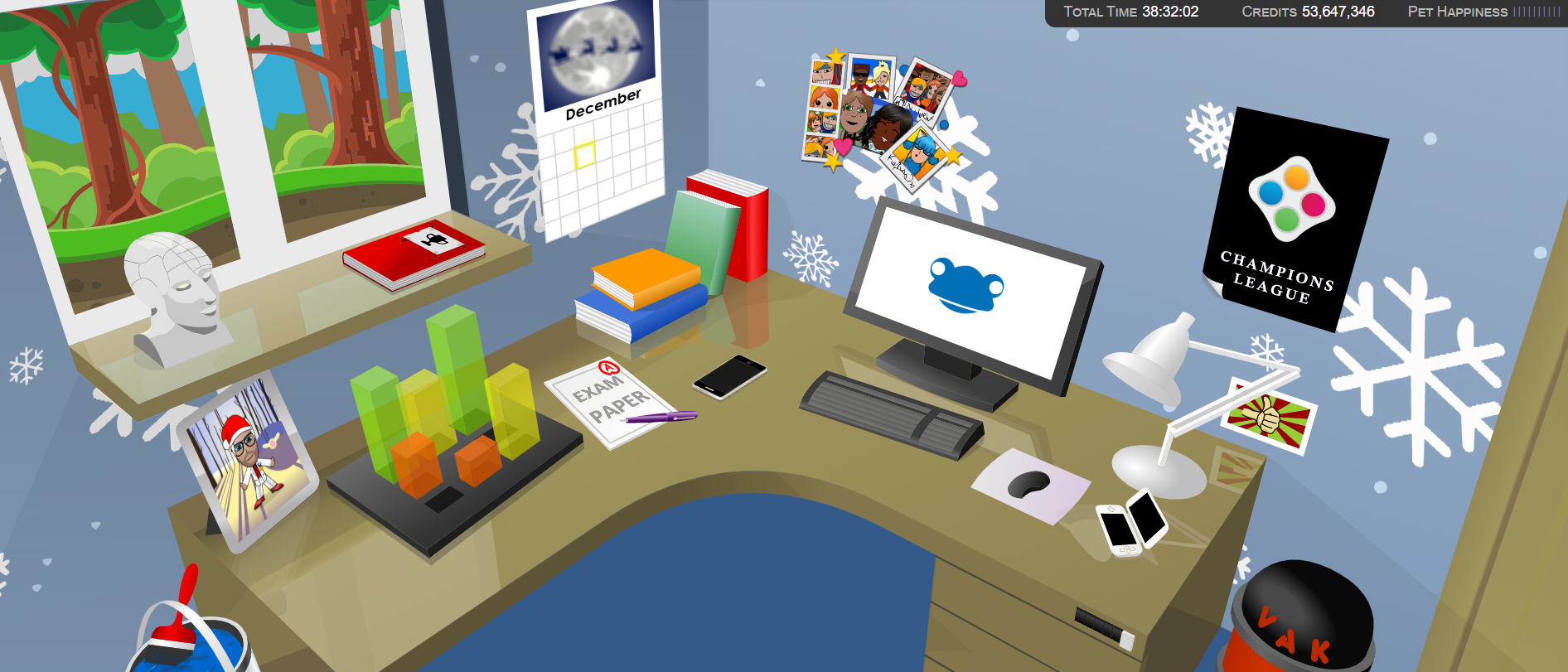 The end of the year is upon us once again. With it comes snow, wind, and a whole heap of goodies from Frog Play! Why not unlock a Christmas Tree outfits for your Avatar, or switch up your background to a winter wonderland? Maybe you've changed your Avatar outfit to something smarter for a festive party, or an 'ugly' winter jumper.